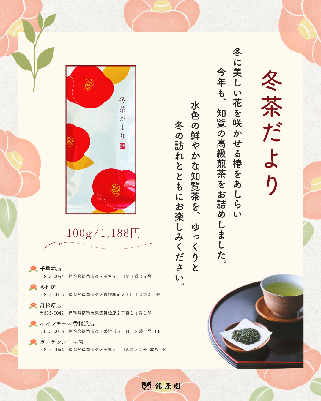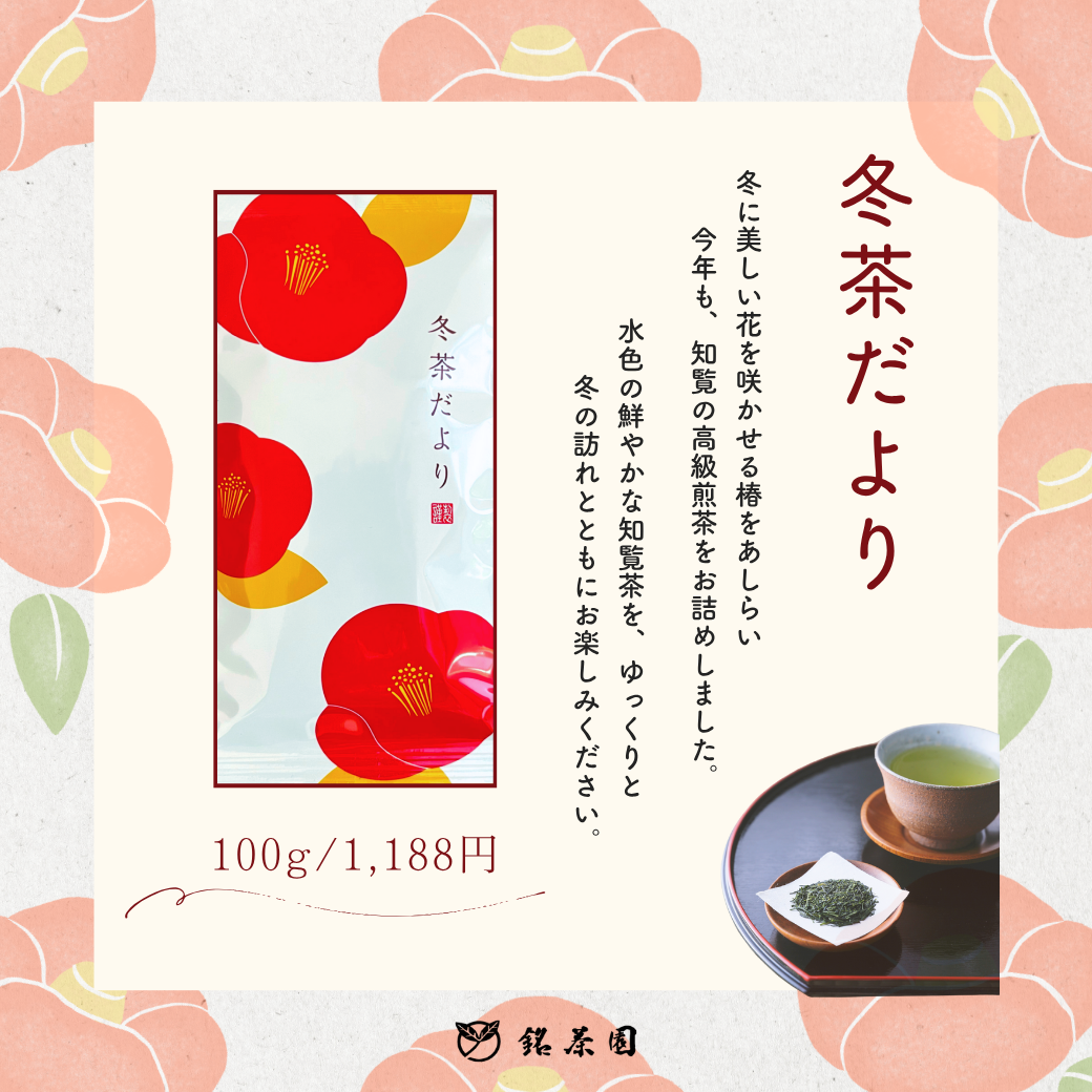 そんな肌寒い季節に、身体をほっこりと温めてくれる 冬のお茶「冬茶だより」を、今年も11月1日(土)より販売いたします。