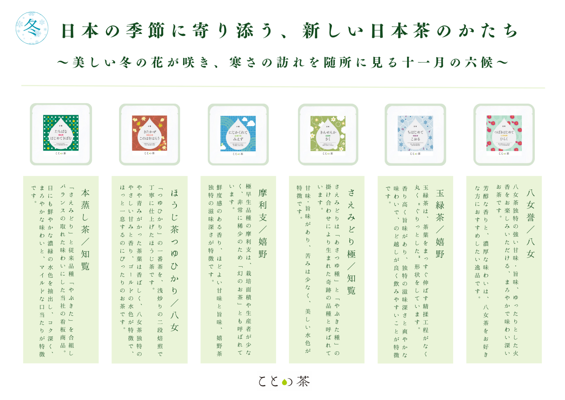 七十二候の繊細な季節感をもとに、茶葉のたのしみ方を提案する新しい日本茶商品。
